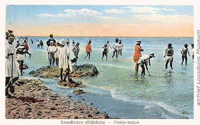 Strand Artikel geplaatst op: 2 October 2015 door loosduins museum Pootjebaden in de zee bij Kijkduin.