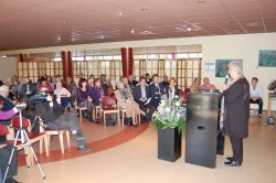 - Voorzitter Corrie Hoekstra, spreekt de genodigden toe.