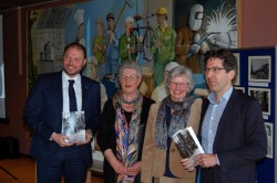 - Harm Benthem (L) met Corry van Straten (M) en Stephan Valk (R) met de eerste exemplaren van het boek.
