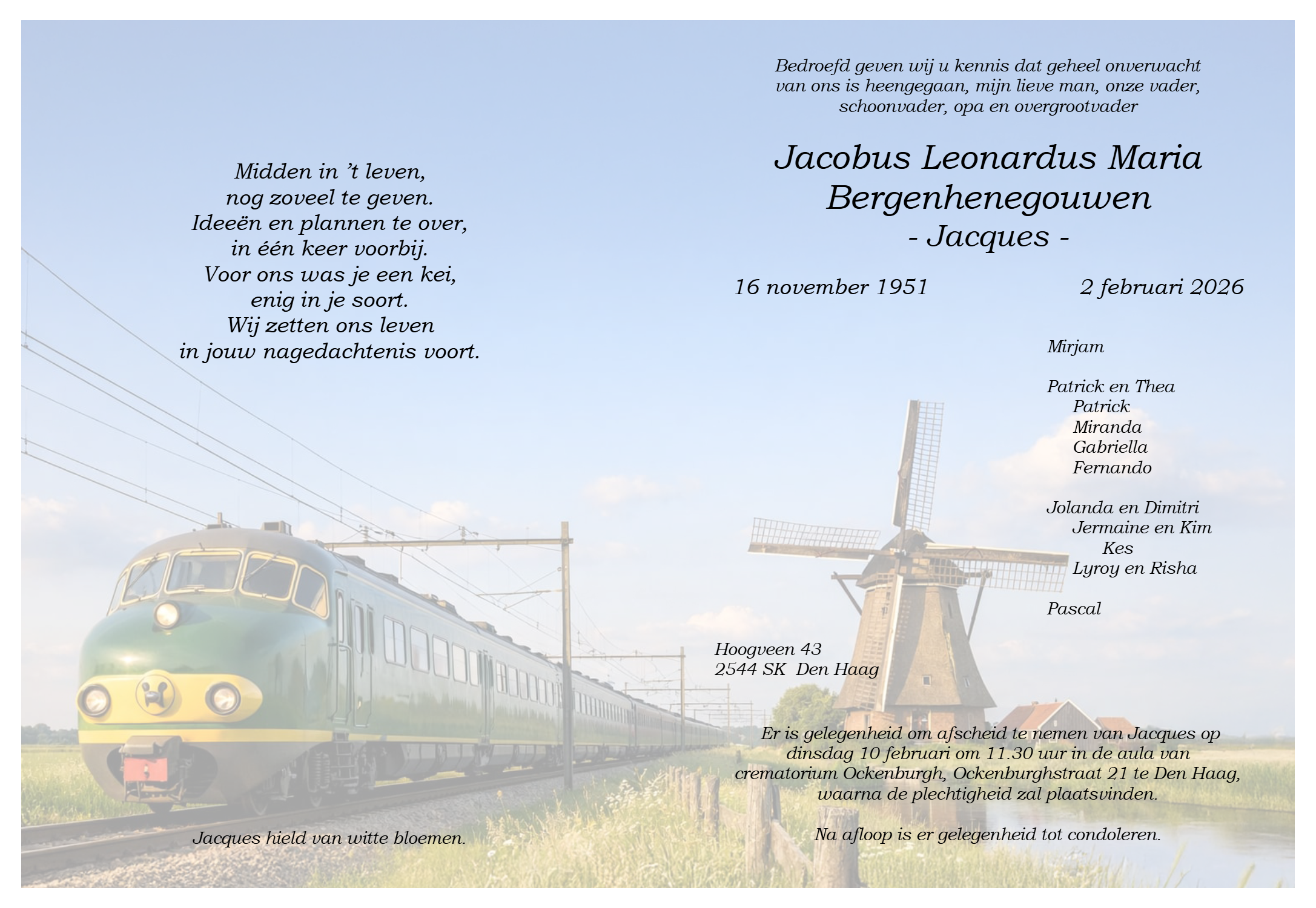 Jacques Bergenhenegouwen is overleden. Het was geheel onverwachts binnen 2 dagen tijd.