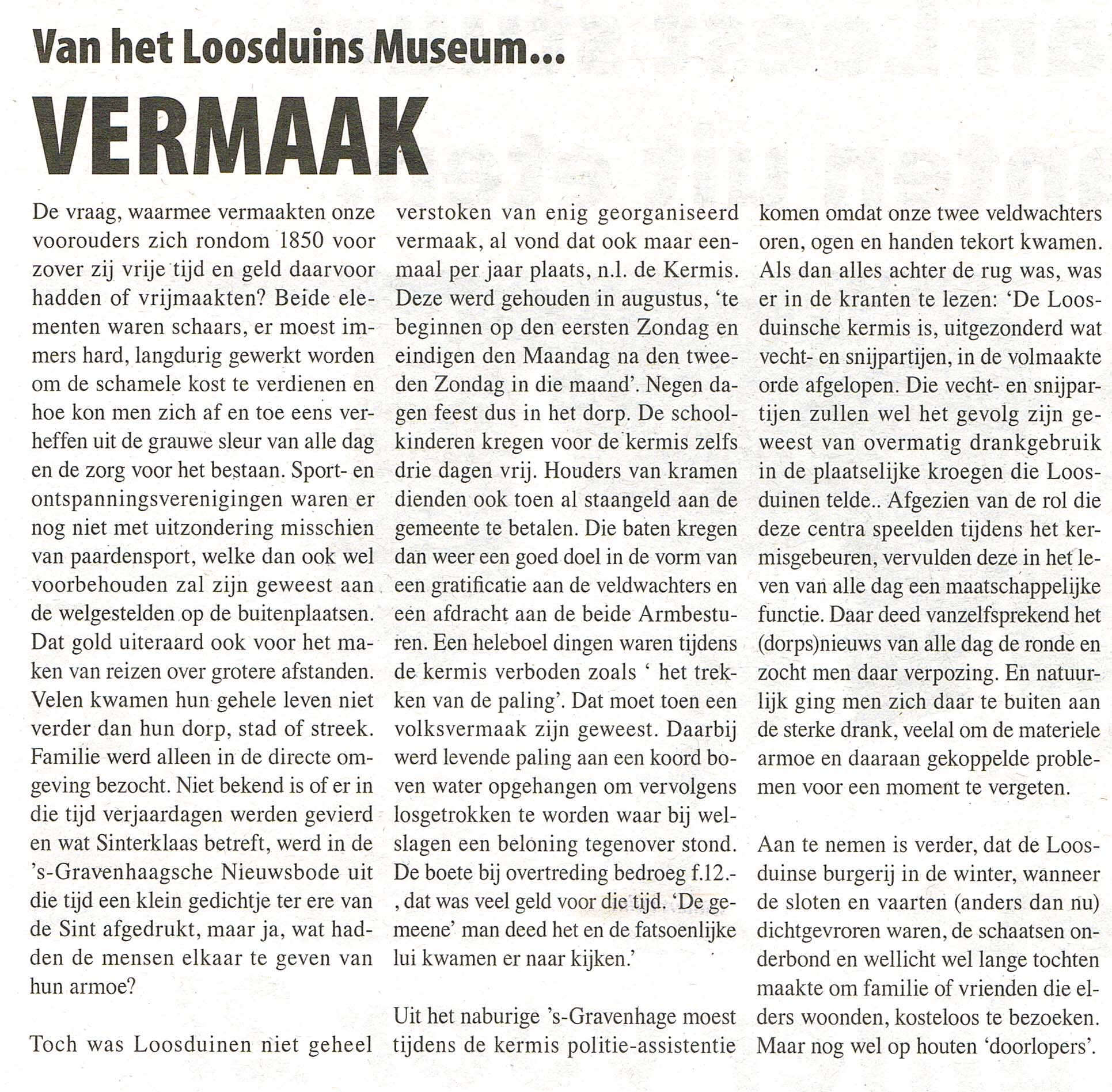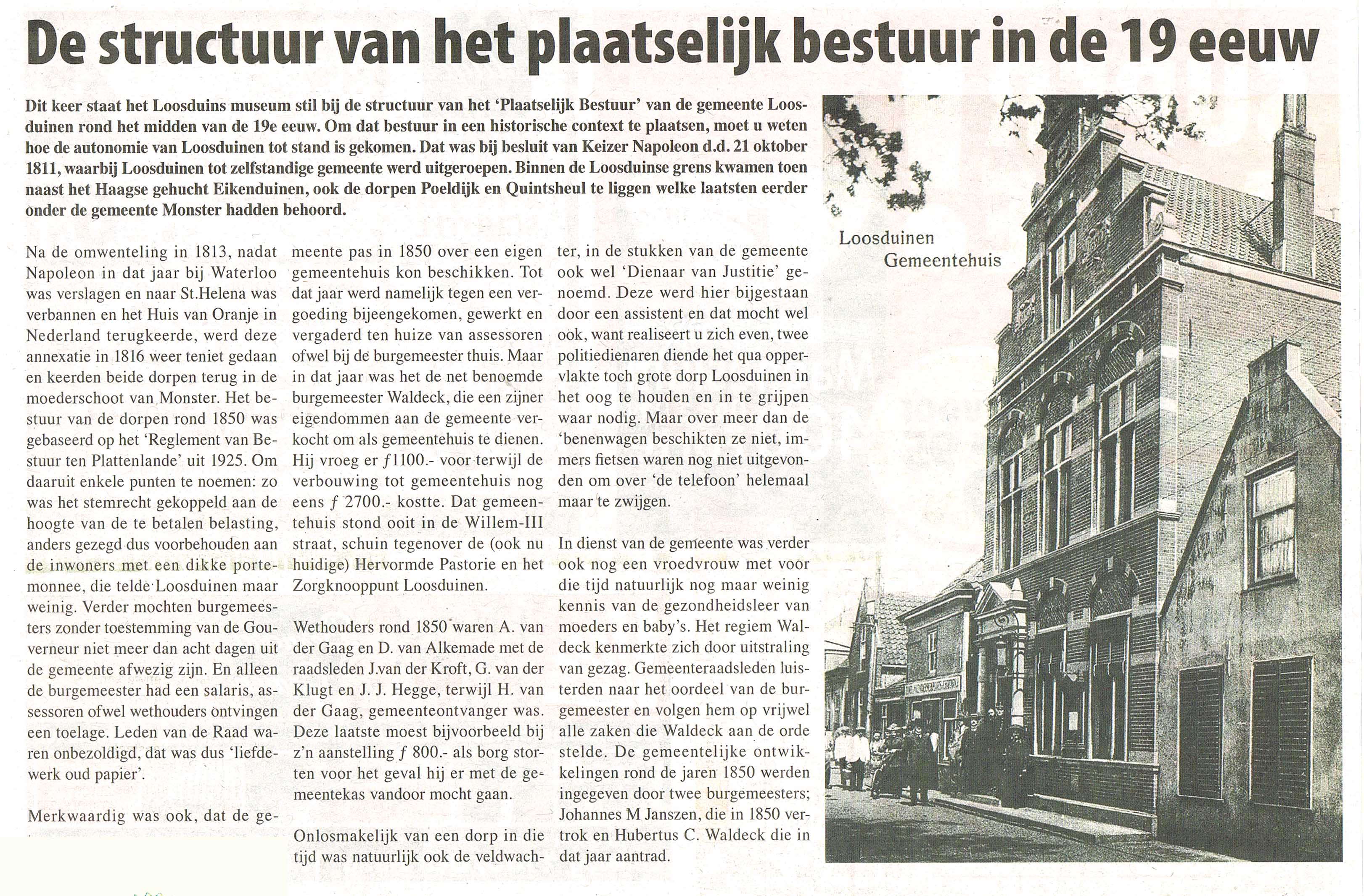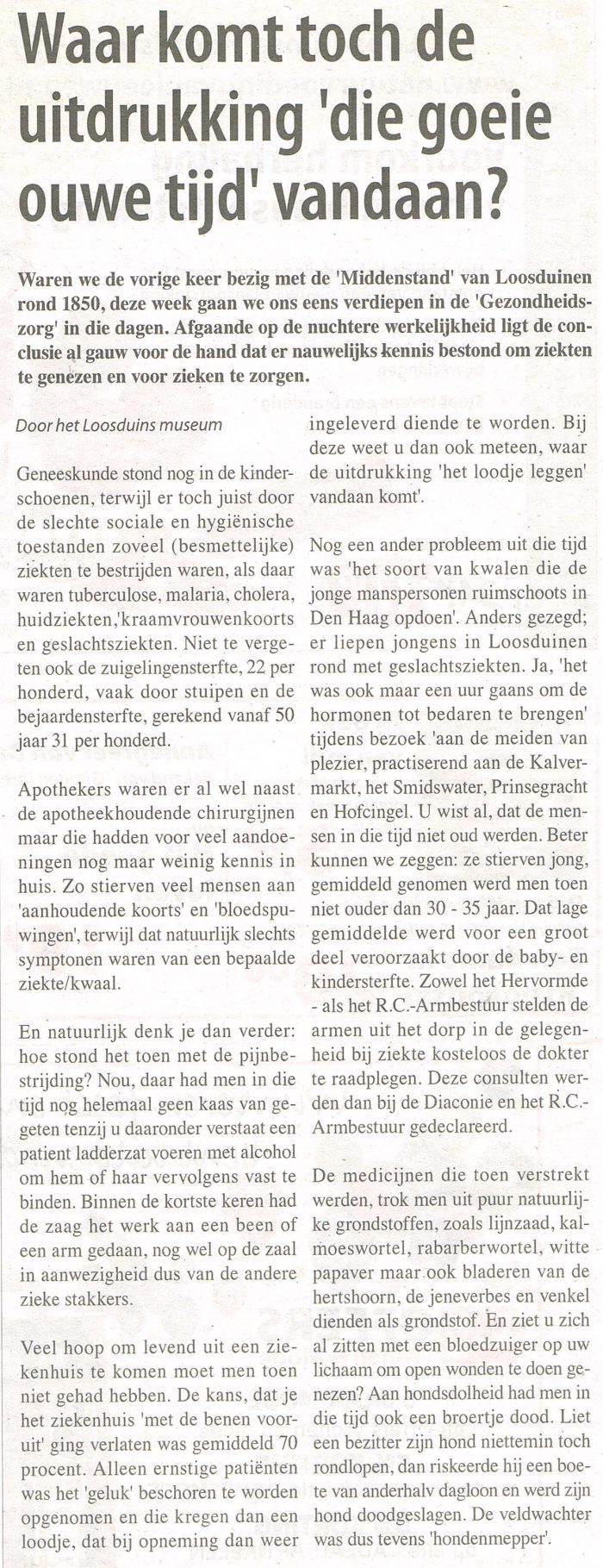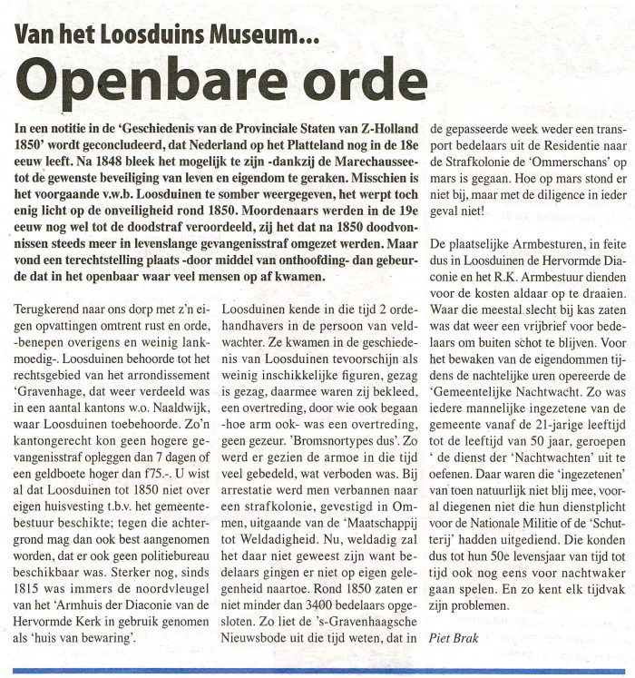 De historici van het Loosduins Museum leveren tweewekelijks een interessante column aan de Posthoorn.